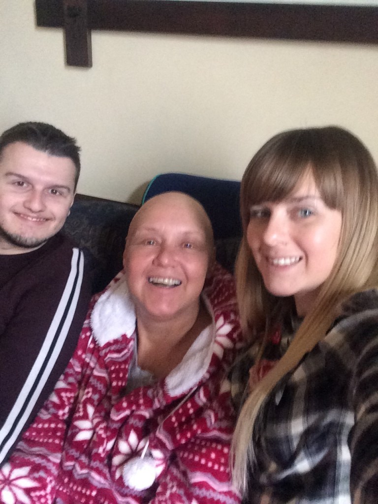I started my first round of chemo and likened it to cherryade as it was bright red. This knocked me for six and I developed a rash all over my body. I also had mucositis, a painful mouth infection where my gums ended up covering my entire teeth and I had numerous ulcers. For two weeks I lived on soup, ice cream and mash. I’d never felt so ill in all my life and the fatigue was indescribable. I became bed bound. My hair was falling out so my friend came to the ward and shaved my head as I would find my hair everywhere. I donated my hair to the Little Princess Trust as it was very long.